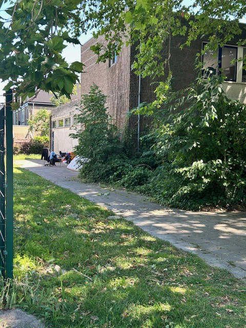 Situatie dak- en thuislozen achter Rode Kruis-gebouw Vredehofstraat 9